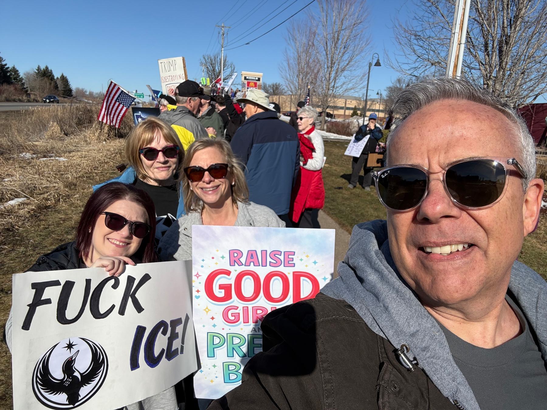Protested the American government and their unconstitutional excesses today. Warmed my heart that 768 people showed up 30 minutes outside of Minneapolis. Proud to be a Minnesotan!
